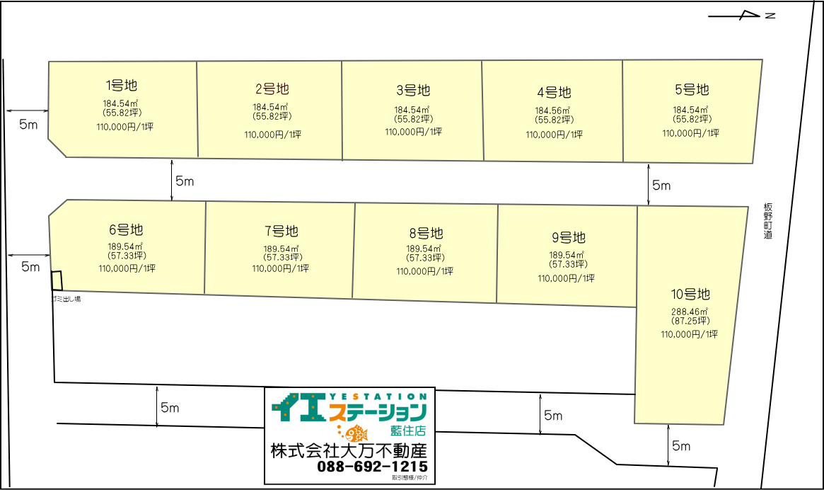 接道 | 北 5m(幅員) 公道 東 公道 南 5m(幅員) 公道 |