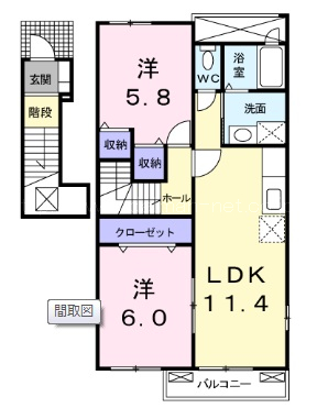 間取 | 2LDK | 間取詳細 | (2F)LDK11.4、洋5.8、洋6 |